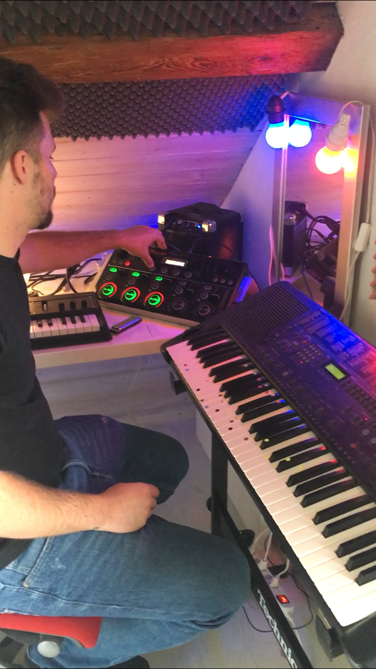 Stefan Kläy an seiner Boss RC-505 Loop Station